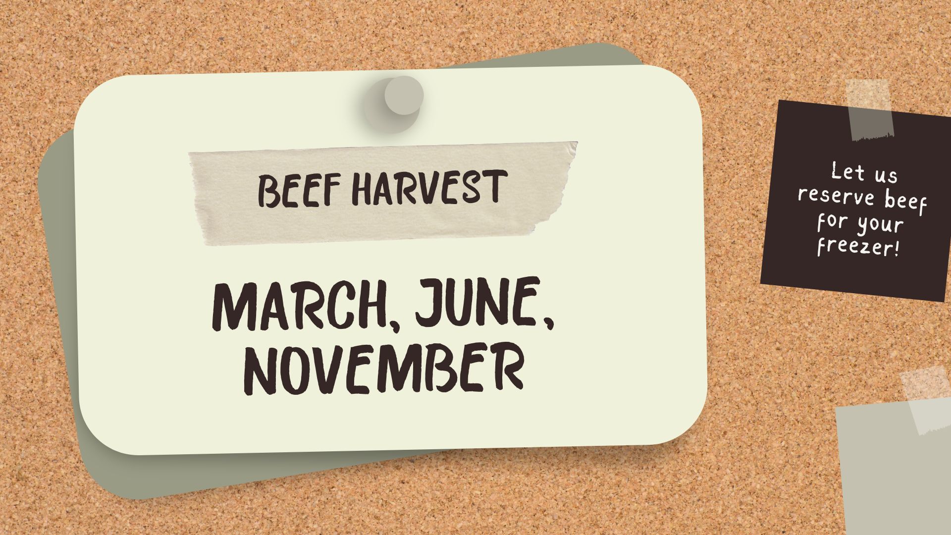 We are now taking reservations for 2025-2026. To reserve a 1/4, 1/2 or whole beef, contact the ranch at 918-837-0459, email us, or message us on Facebook!